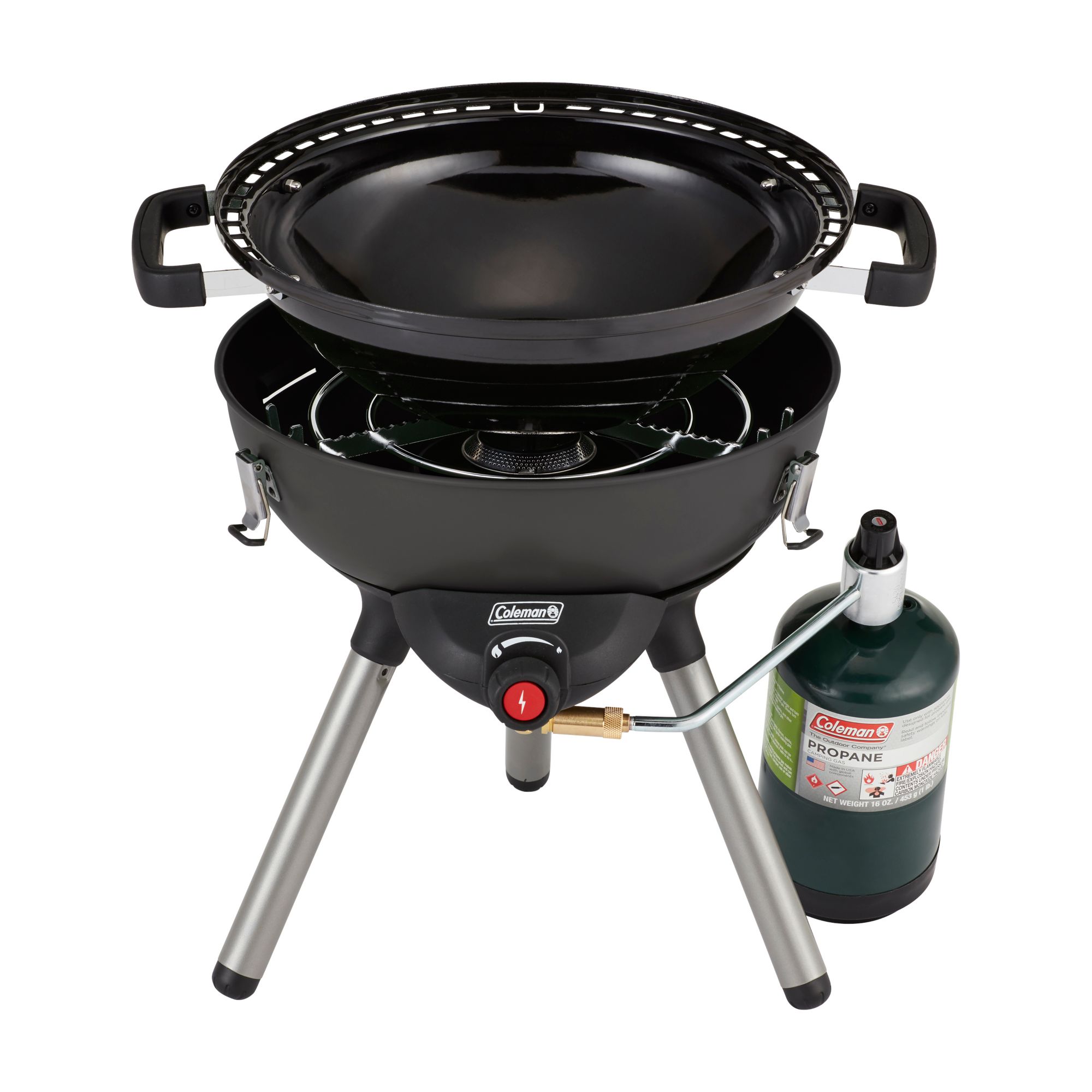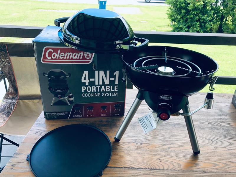 Coleman 4 in-1 portable cooking system review. Removable legs and inserts fit inside inverted wok for easy storage. Removable LEGS Fit Inside Grill INSTASTART Push Button Ignition Water Tray CATCHES Cooking Grease Black. Cook up whatever your tummy desires.