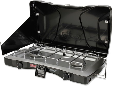 I love my Coleman 4 in 1 portable cooking system Series 5489 that uses propane bottles. A reversible griddlegrill stove insert and a wok. 470 X 1910 X 1615 Height.